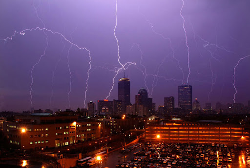 This is a three second exposure of a lightning storm in Boston this April -