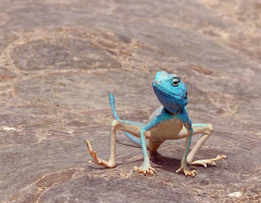 A blue-headed lizard "poses" near the Hatta Pools, Dubai: